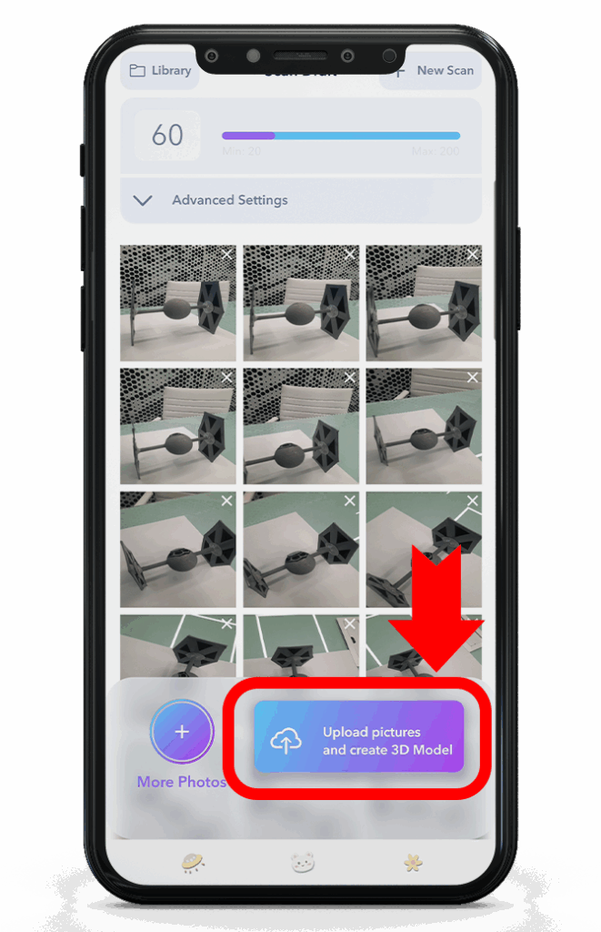 Paso 7. Cuando estén todas las fotografías tomadas solo tendremos que seleccionar Upload pictures and create 3D model para continuar.