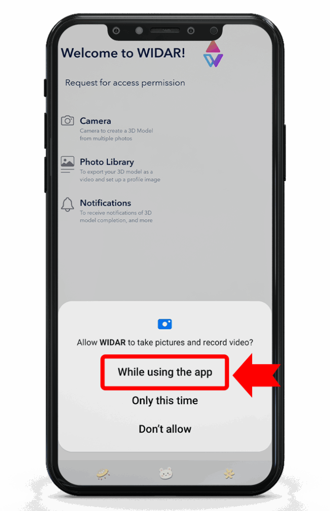 Paso 5. Le damos acceso a la cámara de nuestro celular usando el botón de while using de App o usar estando en la aplicación.