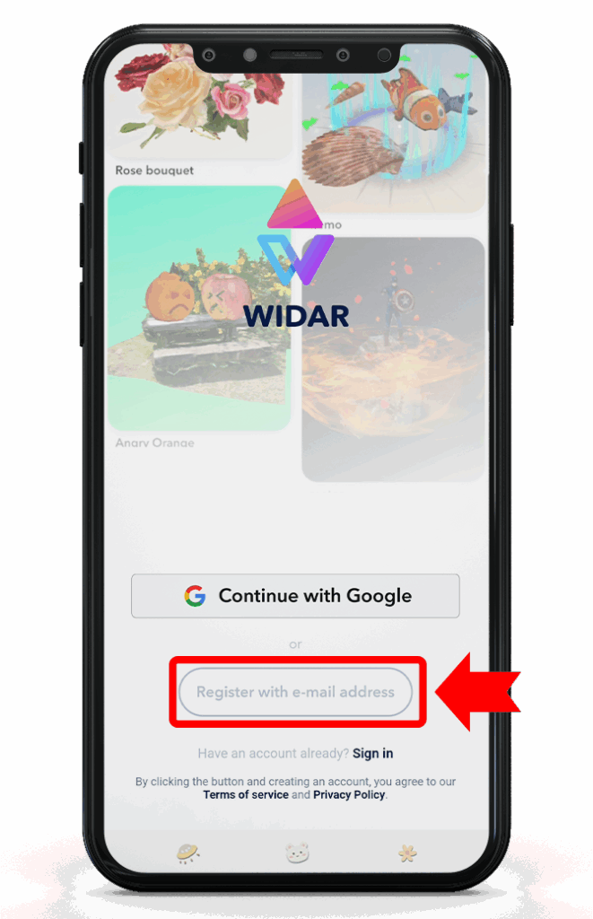 Paso 8. Seleccionamos la opción de Register with e-mail address o registrarse con correo.