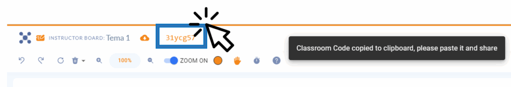 Una vez que ya esté listo el contenido de trabajo o de la sesión, es importante poder proporcionar a los alumnos el código de sesión para que puedan ingresar. Para ello nos debemos dirigir al apartado superior y a un lado del título de sesión aparece un código. Simplemente al dar clic sobre el se copiará automáticamente.