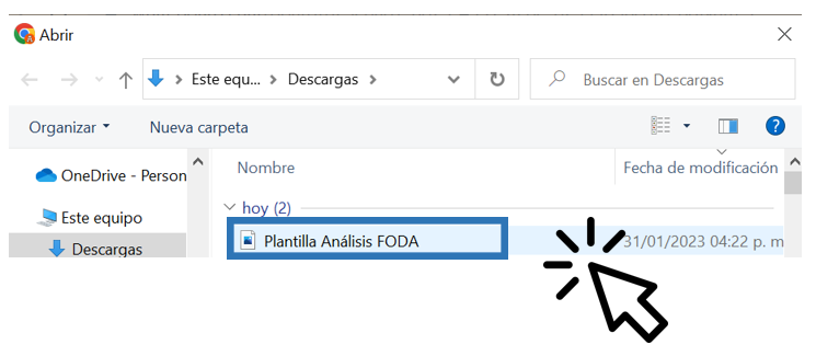 Después se selecciona la plantilla o material desde la computadora. En este caso seguimos con el ejemplo de la plantilla FODA pero puede ser cualquier tipo de contenido.