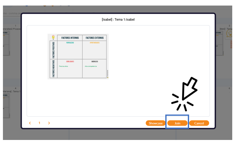Para poder monitorear, ver el trabajo de los alumnos, o dar retroalimentación de manera individual, da clic en el cuadro del alumno y posteriormente da clic en el botón que dice ”Join”.