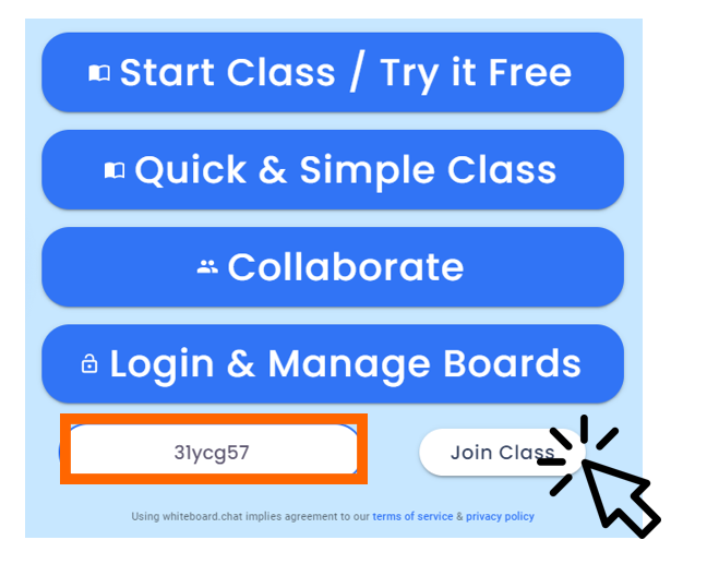 El alumno deberá ingresar a la página de Whiteboard: https://www.whiteboard.chat/