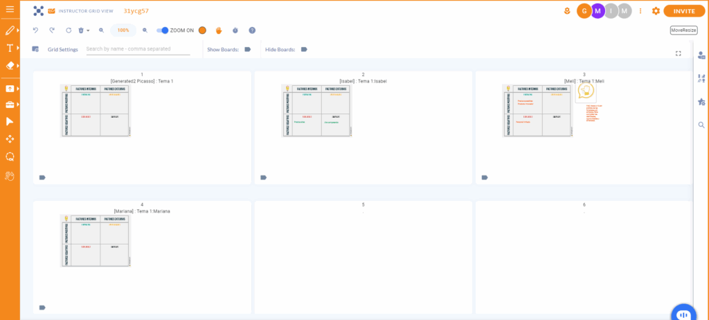 Se proyectará en forma de cuadrícula todos los tableros de los alumnos (presentes y quienes se desconectaron también). Se queda registrado todo.