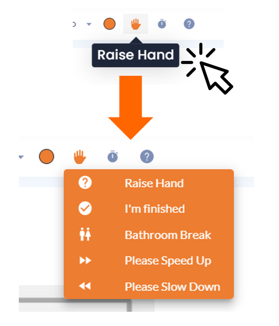 El alumno podrá ”levantar la mano” virtualmente, avisar que ya terminó, poner el status que fue a un break para ir al baño, o dar su opinión si se el docente debería ir más lento o más rápido en el ritmo de su clase.