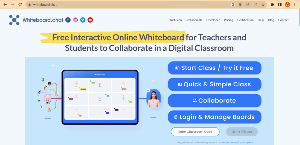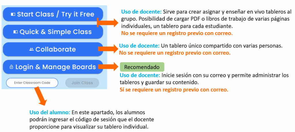 Es una herramienta que funciona como pizarra virtual, es gratuita y 100% en línea. Permite crear actividades de aprendizaje que se comparten con los alumnos en tiempo real. Los alumnos se unen a la sesión y el docente tiene acceso a observar todas las pizarras individuales en tiempo real para monitorearlos y dar retroalimentación al instante.