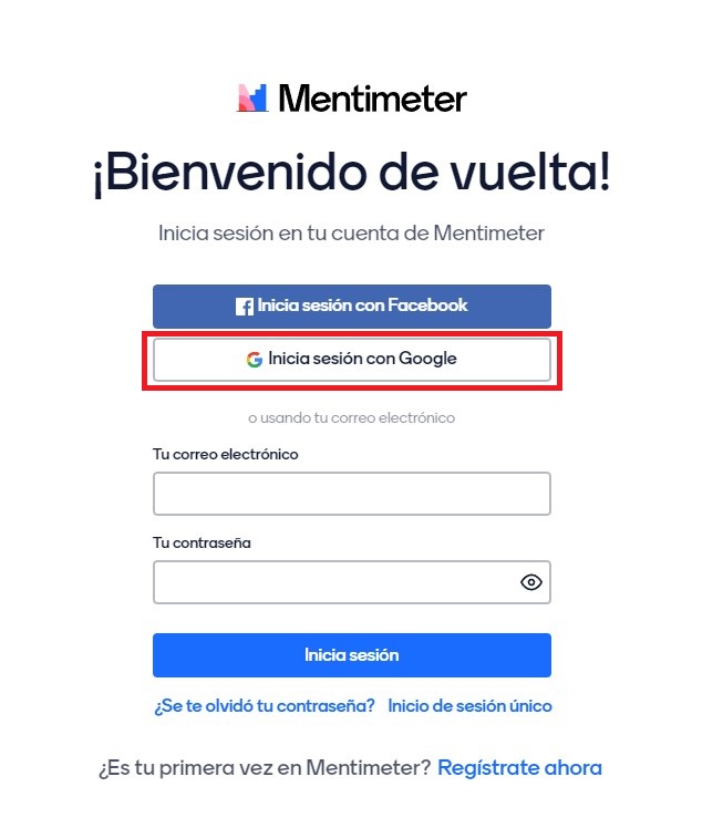 Paso 1 Primero emplea tu cuenta Gmail de nuestra Universidad la cual finaliza con anahuacmayab.mx para poder generar una cuenta en Mentimeter