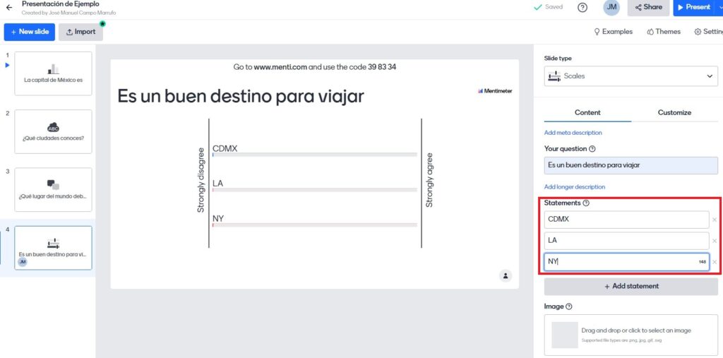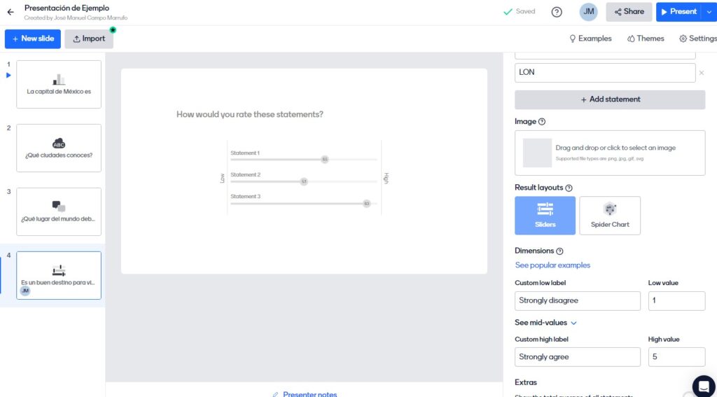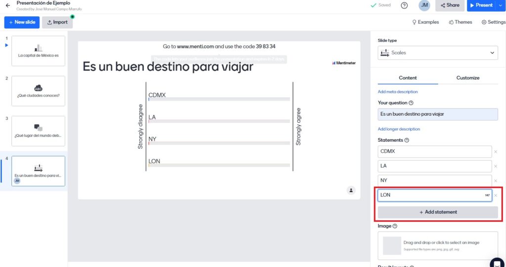 En Statement agregamos las declaraciones a las cuales los participantes dirán que tan de acuerdo o desacuerdo pueden estar.