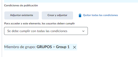 Aparecerá un texto indicando la configuración. En este caso dice ”Solo los miembros de los siguientes grupos y secciones pueden acceder a este elemento”.