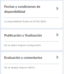 Se desplegará el siguiente espacio, el cual es muy similar a la configuración del foro y de las actividades.
