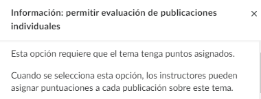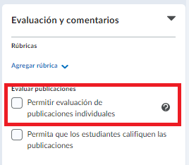 Por otro lado, también podemos seleccionar la opción ”Permitir evaluación de publicaciones individuales”, para poder calificar los comentarios de nuestros alumnos.