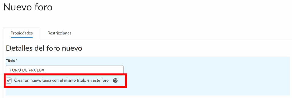 En caso de querer tener un foro como categoría general y en él agregar diversos temas o un tema que sea diferente al título del foro, entonces deberás dejar esta casilla sin marcar.