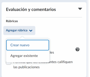2. Seleccionar una rúbrica existente, siempre y cuando la hayamos cargado antes en la sección de Rúbricas.