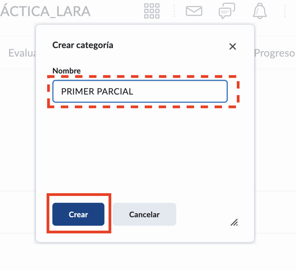 Paso 4. Ingresamos el nombre de nuestra categoría y damos clic a crear..