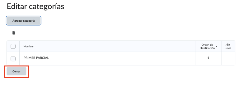 Paso 5. Una vez creadas nuestras categorías, damos clic al botón de cerrar que se encuentra en la parte inferior de la página.