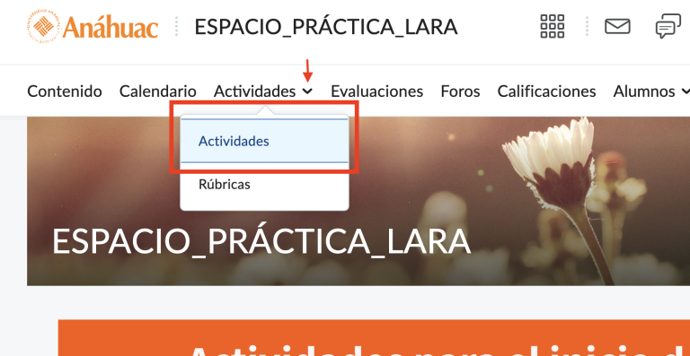 Paso 1. Ingresa al vagón de actividades haciendo clic a Actividades en la barra de navegación para luego seleccionar la opción de actividades de la barra desplegable.