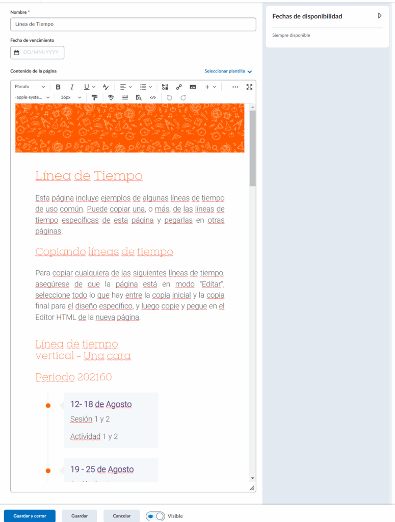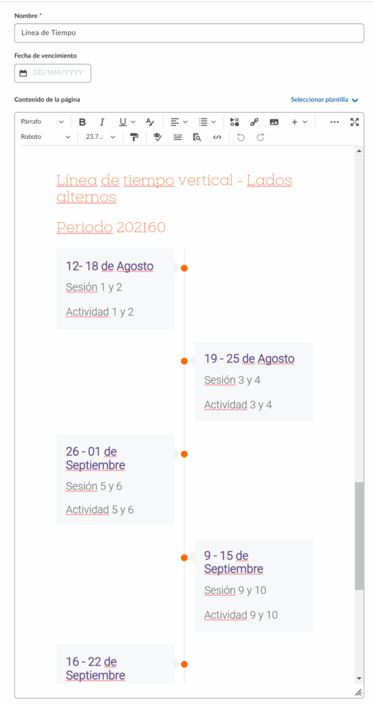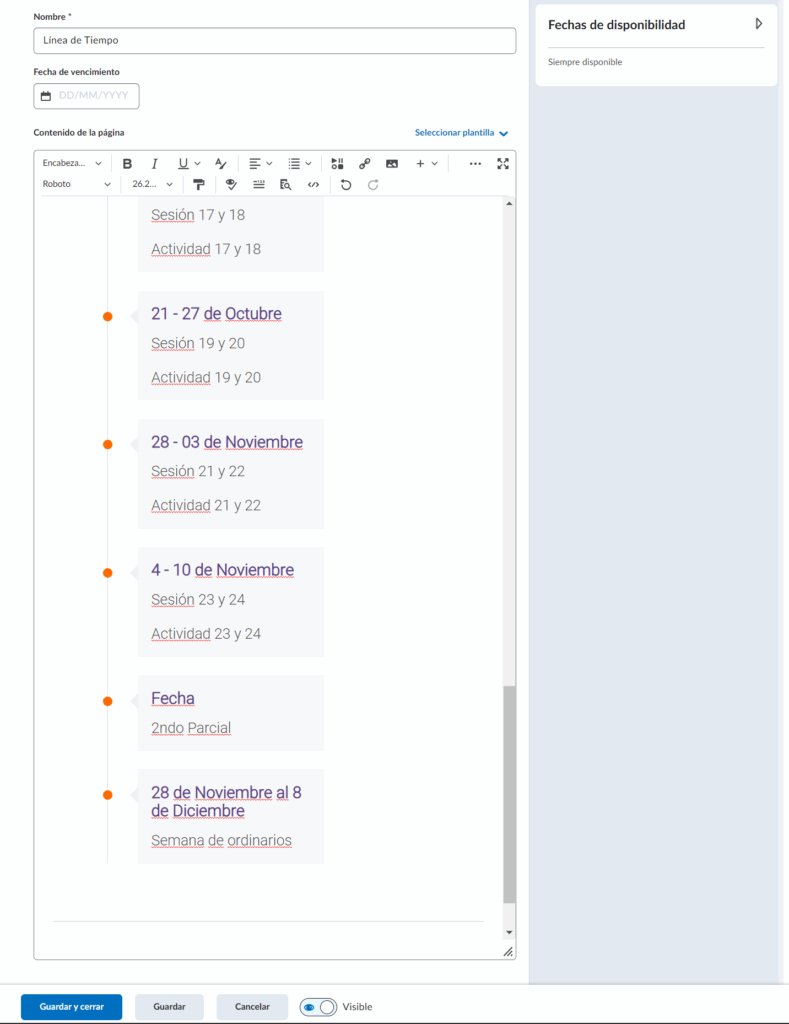 En el presente tutorial, aprenderemos cómo editar la línea de tiempo de nuestra materia en línea.