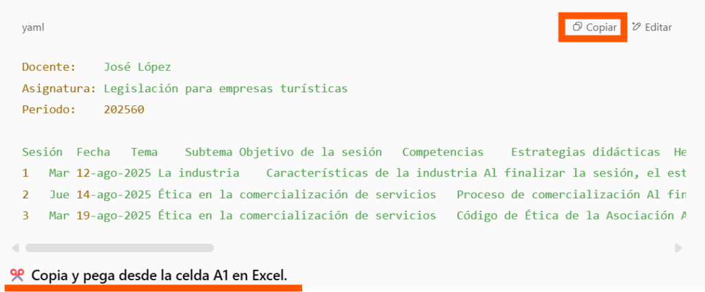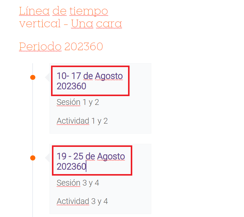 Paso 4. Ahora debemos posicionarnos en el texto de nuestra Línea de tiempo y comenzar a escribir las fechas adecuadas que hemos planeado para nuestra materia.