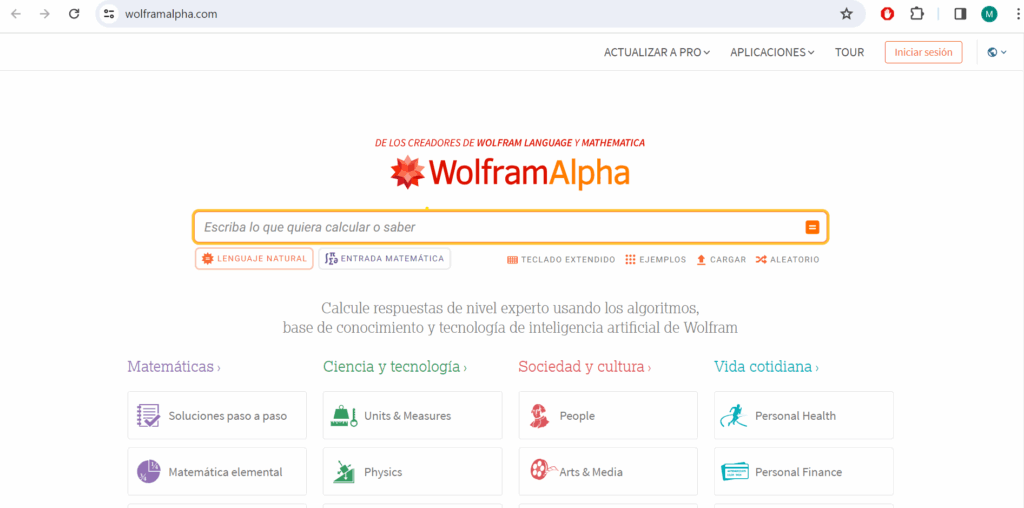 Wolfram Alpha es un buscador web, que responde preguntas y realiza cálculos de manera inmediata.