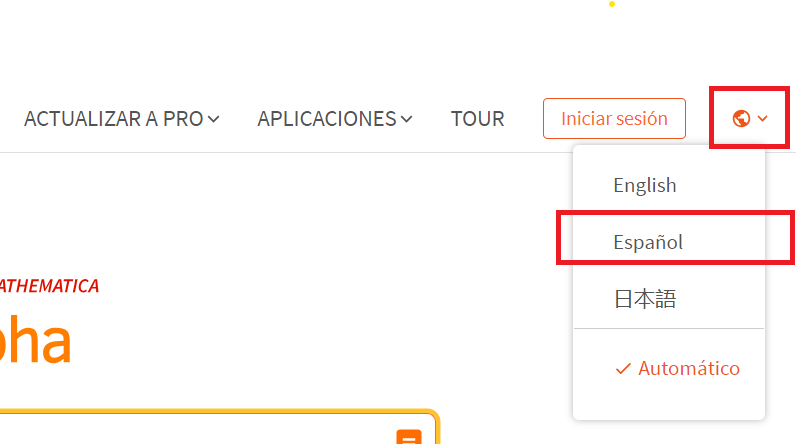 Paso 2. Podemos poner de preferencia el idioma Español. Para ello nos dirigiremos a la esquina superior derecha y haremos click en el globo. Se desplegará un menú en el que seleccionaremos Español.