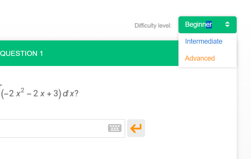 Podemos cambiar entre la dificultad del problema, ya sea principiante, intermedio y difícil. Para ello haremos click en la esquina superior y elegiremos la dificultad deseada.