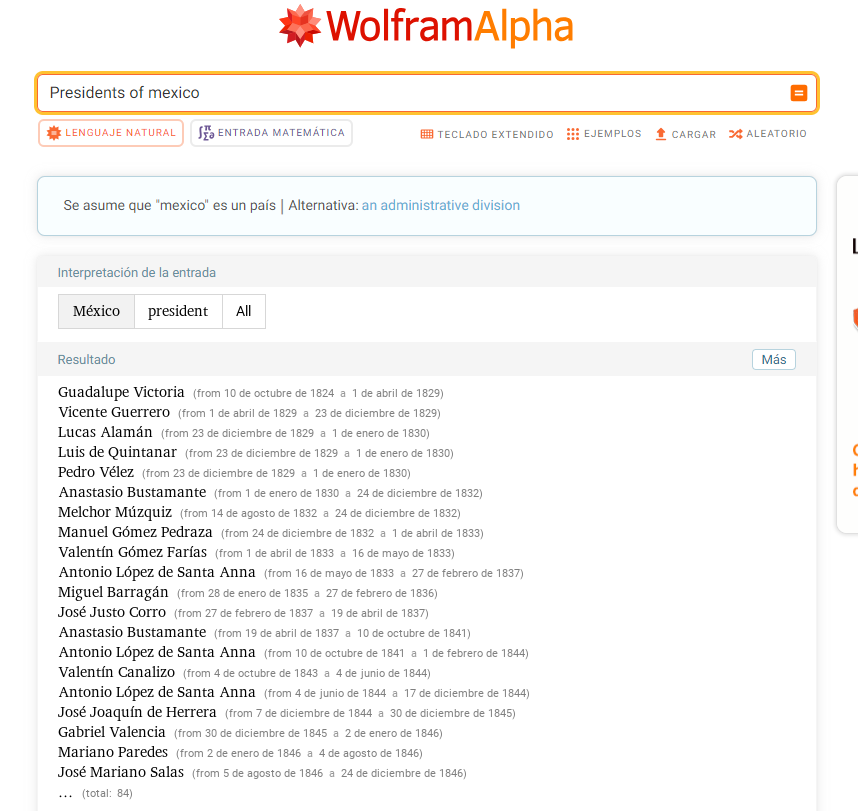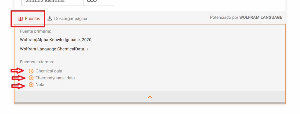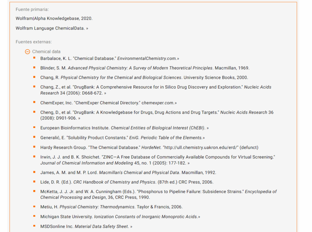 Extra: Al generar una búsqueda y obtener el resultado, podemos consultar las fuentes donde Wolfram Alpha obtuvo la información.