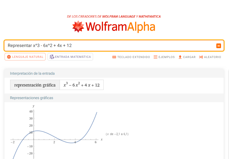 Paso 2. Daremos la instrucción, por ejemplo “Representar x^3 – 6x^2 + 4x + 12”