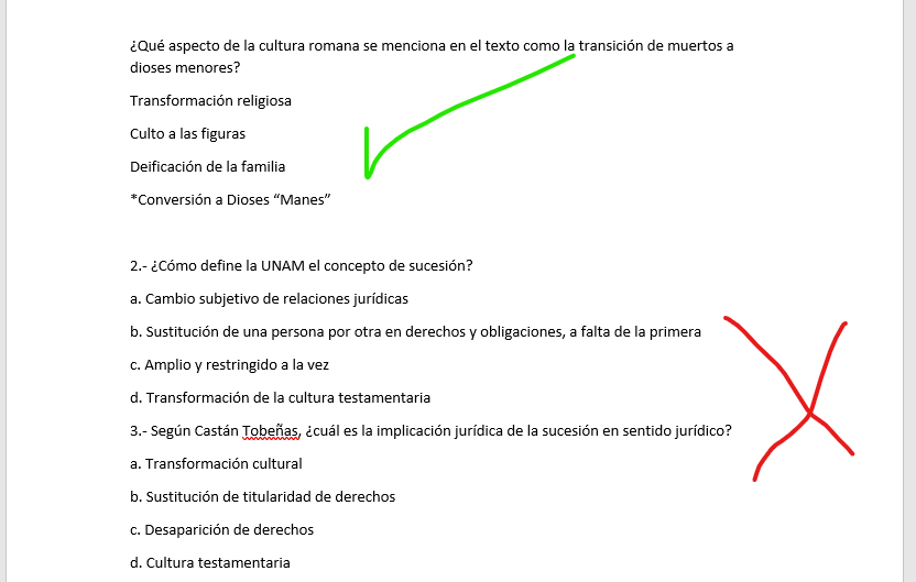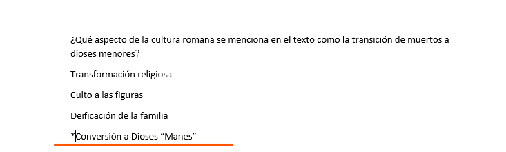 Paso 3: Una vez tengamos nuestras preguntas sin formato e incisos. Vamos a indicar la respuesta correcta de la siguiente forma: Para poder marcar la respuesta correcta deberemos colocar un * como se muestra en la imagen siguiente