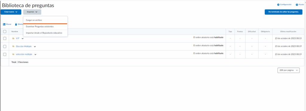 Esta herramienta nos proporcionará una opción cómoda para cargar de manera masiva nuestros bancos de preguntas.