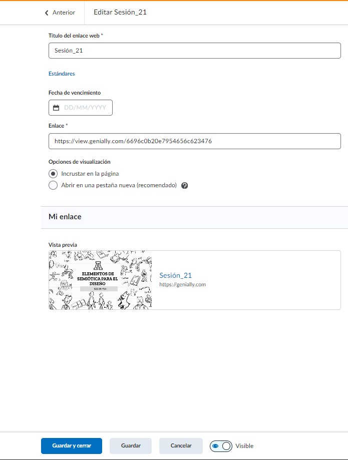 Una vez completada, se puede generar un enlace para compartir la presentación o incrustar en una plataforma educativa.