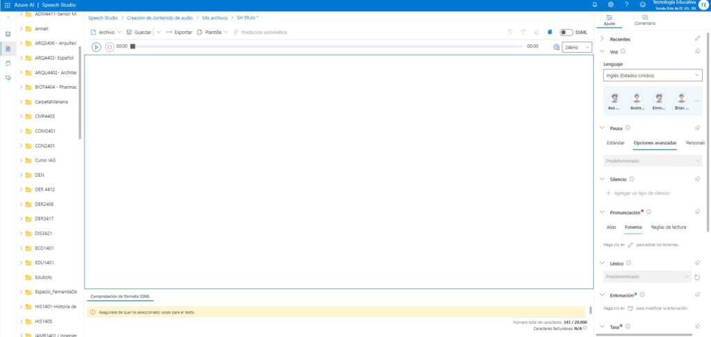 Es común que al generar audio en español con Azure te encuentres con problemas de pronunciación, ritmo o acentuación. Aquí es donde puedes aplicar algunos ajustes para mejorar la calidad de la narración. Si bien Azure hace un trabajo notable, es posible que tengas que intervenir en ciertos aspectos para perfeccionar el resultado final.