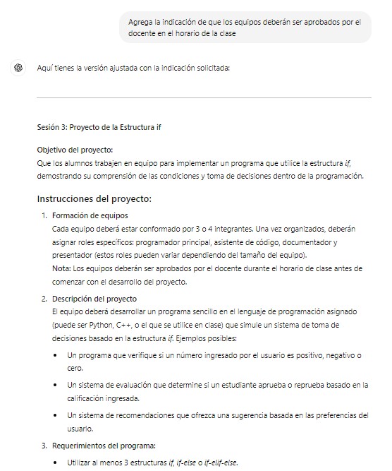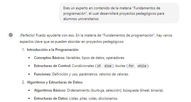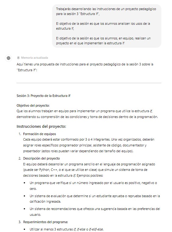 - Clarificación de Expectativas: Definir con precisión lo que se espera alcanzar con cada proyecto permite dirigir a ChatGPT hacia metas educativas concretas.