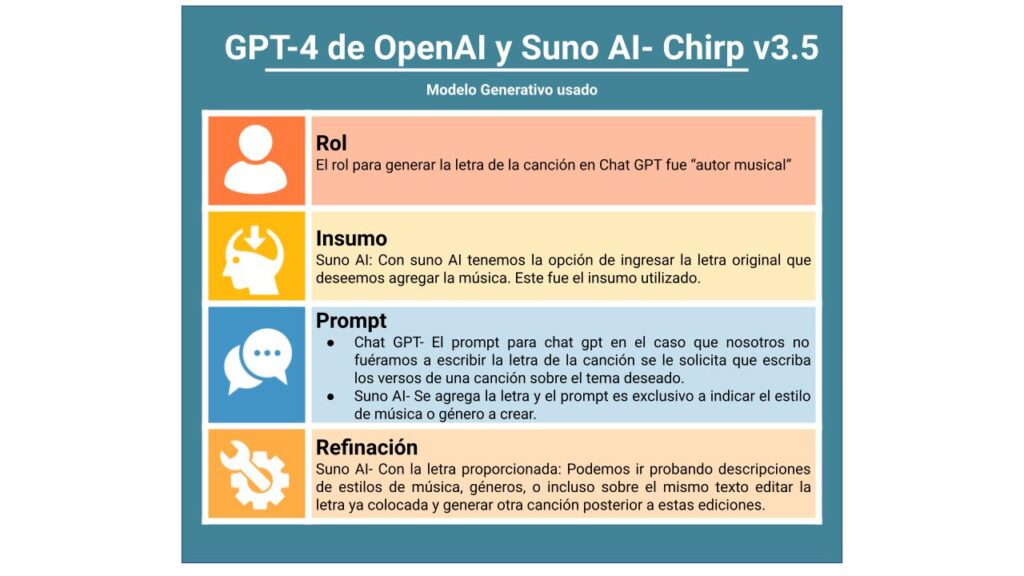 El rol para generar la letra de la canción en Chat GPT fue “autor musical”