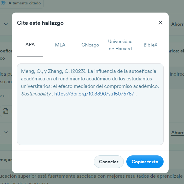 Sin embargo, la Universidad proporciona acceso a una amplia variedad de bases de datos científicas y bibliográficas que pueden incluir los documentos necesarios. Por lo tanto, es recomendable que siempre verifiques si los artículos referenciados por Consensus están disponibles a través de las bases de datos.