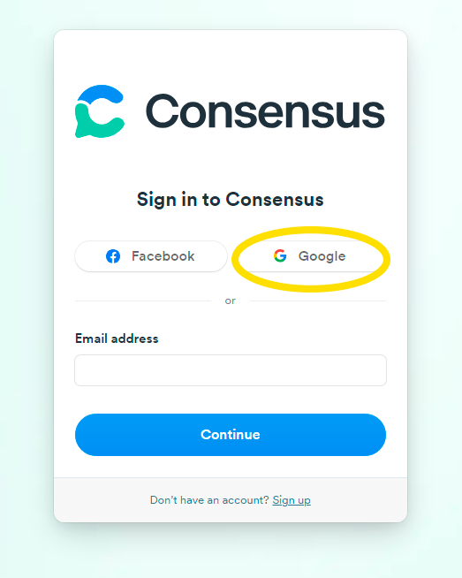Acceso a la página web: Comienza accediendo al sitio web de Consensus utilizando el siguiente enlace: https://consensus.app/.