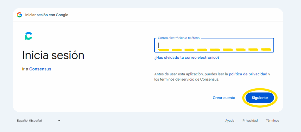 ¡y listo! Tu cuenta en Consensus estará creada y lista para usar.