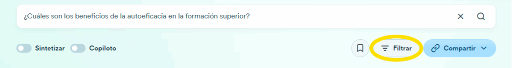 También puedes activar la opción Copilot, un asistente de investigación basado en IA que genera respuestas y crea contenido coherente.