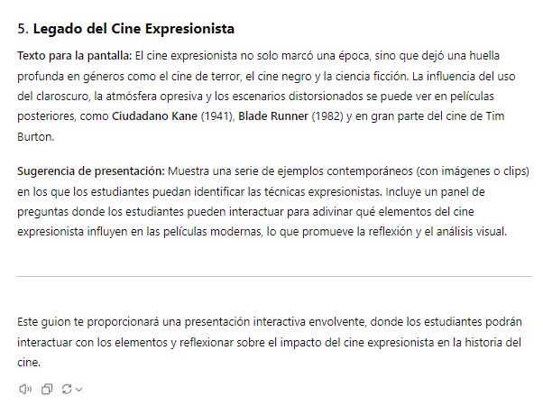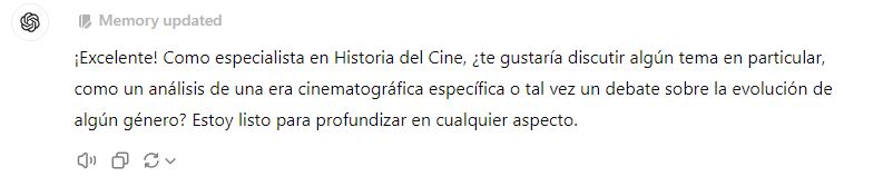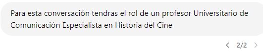 - Ejemplo: Para esta conversación tendras el rol de un profesor Universitario de Comunicación, Especialista en Historia del Cine.