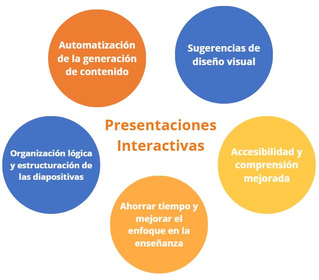 AdemĆ”s de hacer que las presentaciones sean mĆ”s visualmente atractivas, la IAG tambiĆ©n mejora la accesibilidad y la comprensión del contenido. La IA puede generar automĆ”ticamente versiones alternativas del contenido, como subtĆtulos para los videos o descripciones detalladas de las imĆ”genes, lo que facilita el acceso a estudiantes con discapacidades visuales o auditivas. Asimismo, la capacidad de la IAG para presentar la información de manera clara y estructurada ayuda a que todos los estudiantes, independientemente de sus capacidades, puedan entender mejor el material.