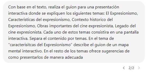 En esta ocasión emplearemos Chatgpt como la AIG que nos proporcionarÔ los insumos o guias para nuestra presentación Interactiva