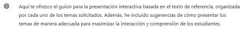 - Monitorea el compromiso de los estudiantes y ajusta el ritmo de la presentación en función de su comprensión y participación.