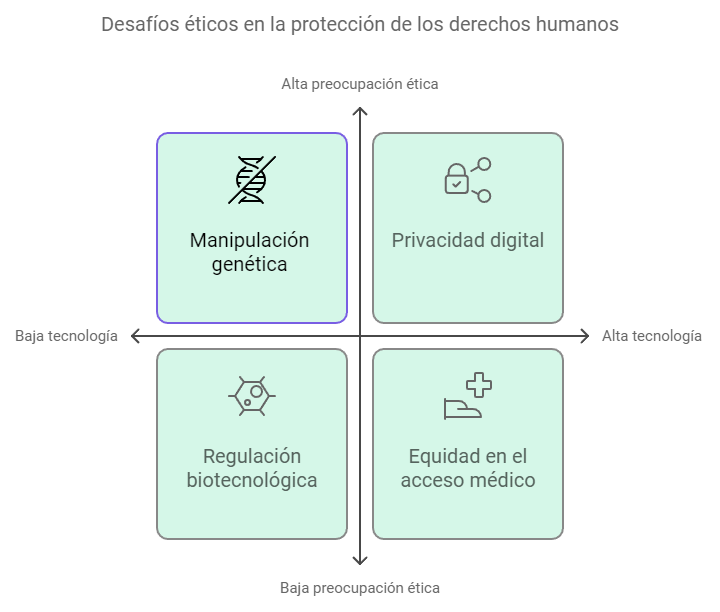 A nivel mundial, enfrentamos desafíos éticos cada vez más complejos, que involucran conflictos entre el avance tecnológico, la economía global y la protección de los derechos humanos. Estos desafíos requieren una respuesta ética basada en el respeto a la dignidad humana y la protección de los vulnerables. Algunos de estos desafíos incluyen la regulación de la biotecnología, el acceso equitativo a los avances médicos y la protección de los datos personales en un mundo digitalizado.