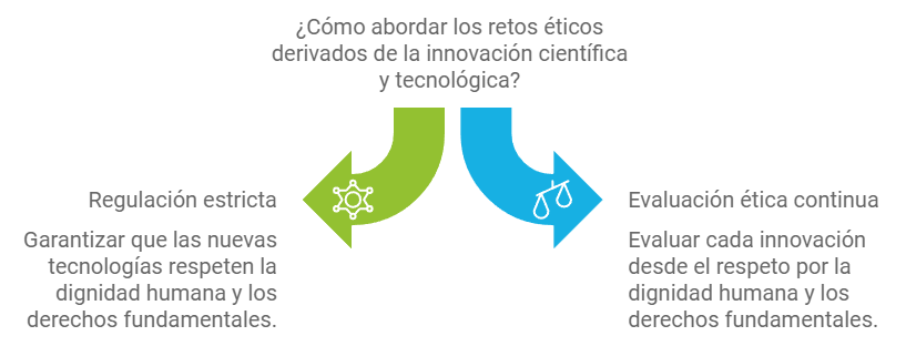 La bioética personalista enfrenta retos futuros derivados de la innovación científica y tecnológica. La globalización ha acelerado el desarrollo de tecnologías como la inteligencia artificial, la biotecnología y las nanotecnologías, que presentan oportunidades y desafíos éticos. Estos avances requieren una regulación adecuada que garantice que las nuevas tecnologías respeten la dignidad humana y no comprometan los derechos fundamentales.