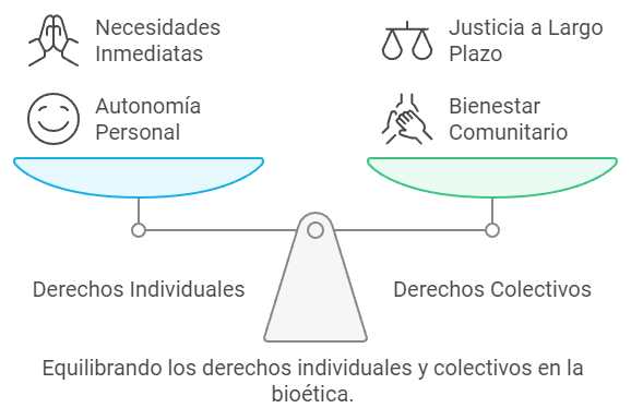 Uno de los dilemas más complejos que enfrenta la bioética personalista es el conflicto entre los derechos individuales y los derechos colectivos. Estos dilemas surgen cuando el ejercicio de los derechos de un individuo entra en conflicto con los intereses y derechos de una comunidad o grupo. La bioética personalista proporciona herramientas para equilibrar estos conflictos sin comprometer la dignidad humana.