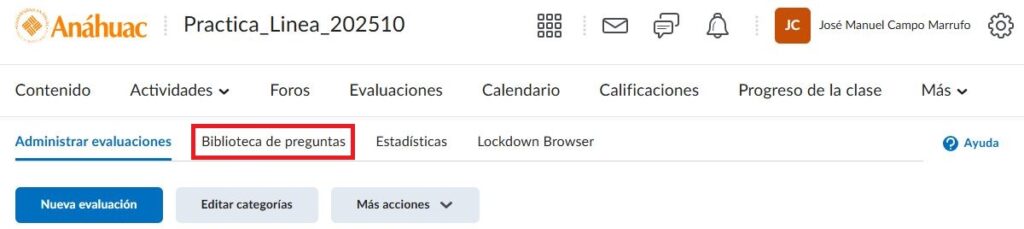 Ahora seleccionamos la opción Biblioteca de Preguntas