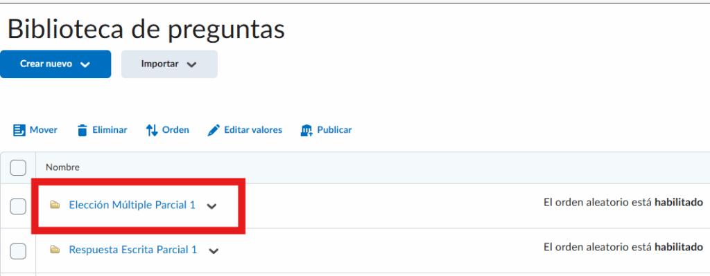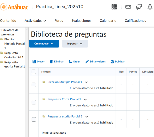 Al finalizar, sus bancos de preguntas deberán lucir de la siguiente manera:
