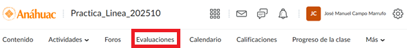 El primer paso es seleccionar el vagón de Evaluaciones dentro de la plataforma.