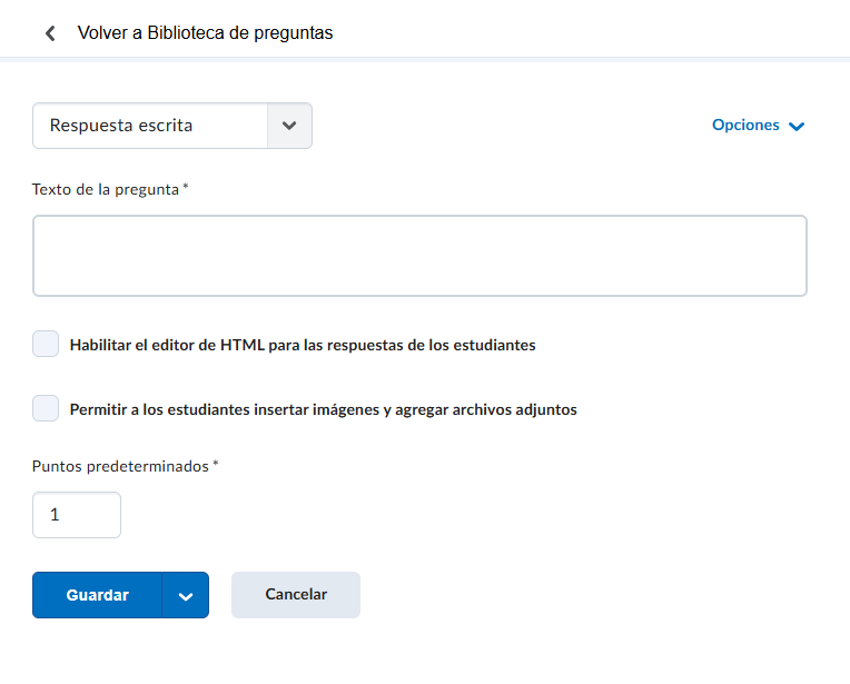 En caso de que queramos que nuestros alumnos elaboren su respuesta con apoyo multimedia damos clic en Habilitar el editor HTML para las respuestas de los estudiantes.