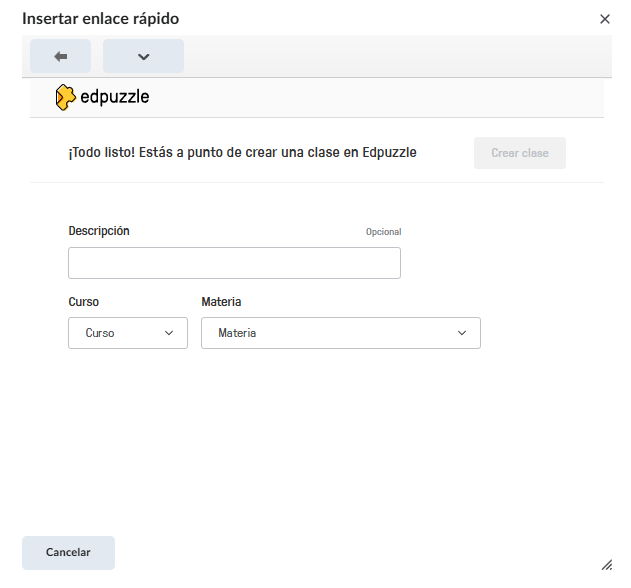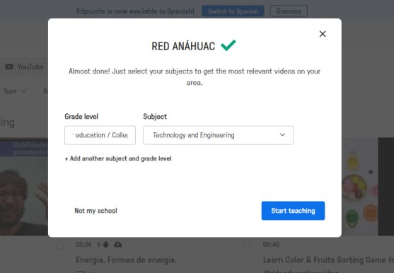 - Si es la primera vez que vinculas un video, la plataforma te pedirá configurar tu materia en Edpuzzle.