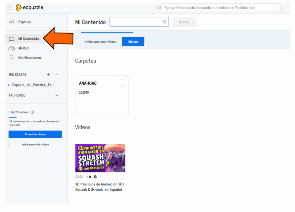 - Mi red: permite identificar videos utilizados por otros docentes de la comunidad Anáhuac.